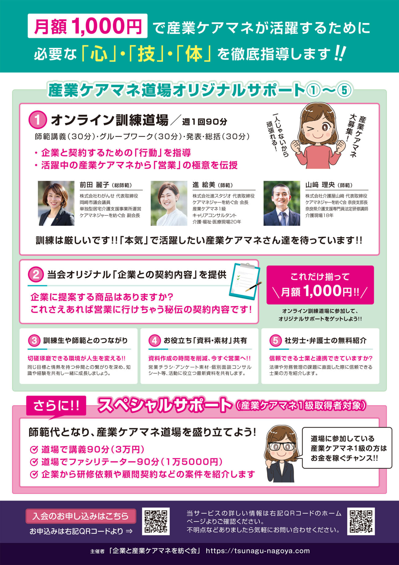 4月から始まる新企画「産業ケアマネ道場」について 前田、進、山﨑の3人が道場について語ります。